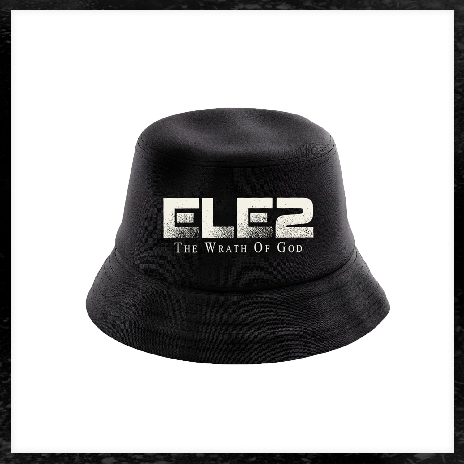 ELE2 White Embroidered Logo On Black Bucket Hat.
